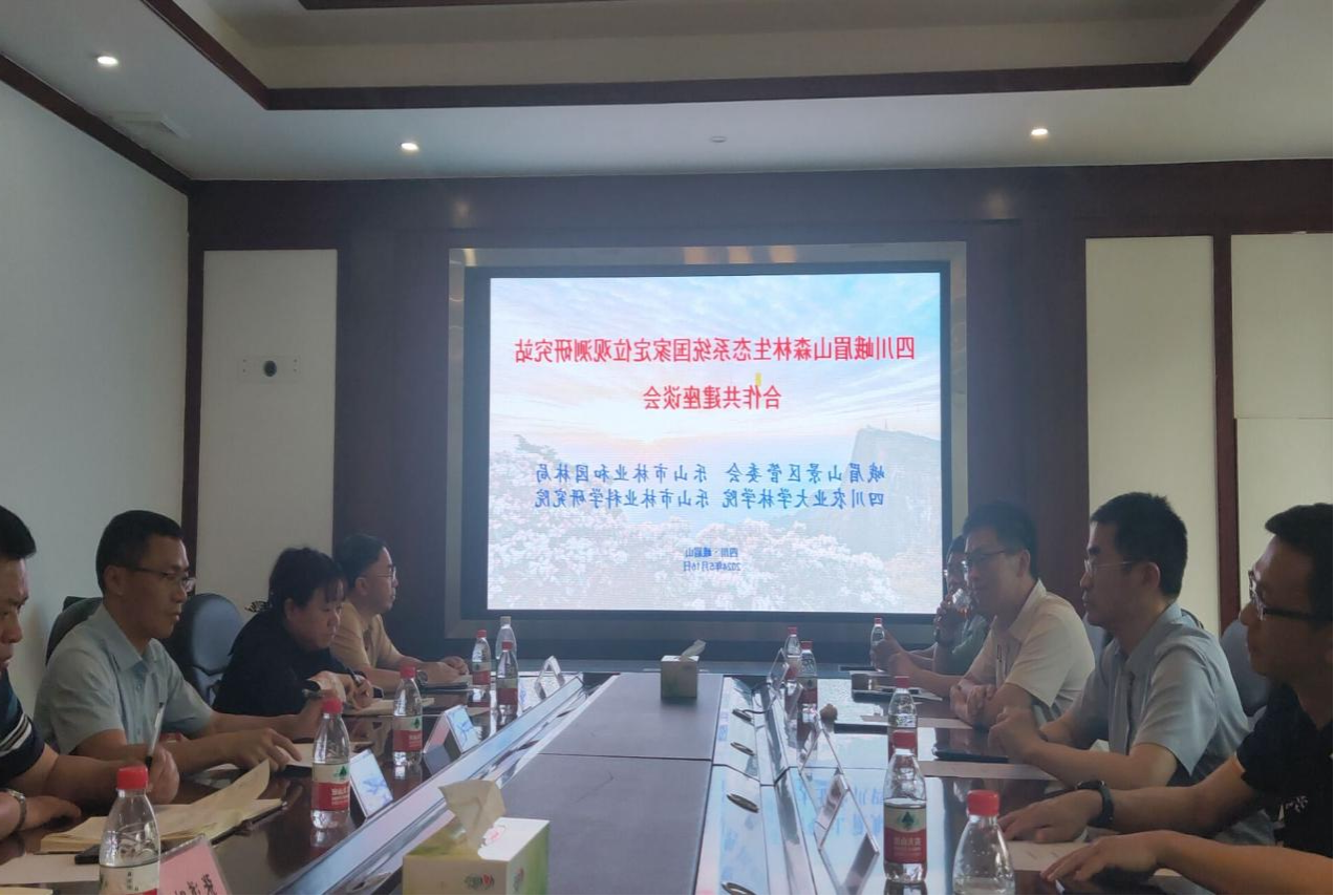 在与乐山市林业与园林局、峨眉山生态监测定位站的座谈会上,峨眉山风景管理委员会工会主席汤永进对胡迅、潘远智一行表示了热烈欢迎。乐山市林科院院长陈栎霖详细介绍了峨眉山国家生态监测定位站的基本情况,并强调了通过双方党建活动加强双方合作交流的重要性,希望双方能优势互补,加强合作,特别是希望林学院对峨眉山生态监测定位站的建设提供技术支持。胡迅对乐山市林科院、峨眉山生态监测定位站表示了感谢,希望双方加强党建联建,协同资源,发挥各自优势,共同推进区域生态文明建设。