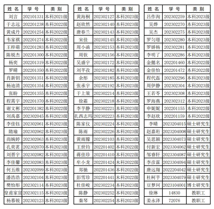 经各小班团支部及校、院级学生组织民主推荐,报学院党委审核,现将我院2024年春季学期入党积极分子培训班学员名单予以公示,公示期为3月19日至22日。广大师生对名单如有异议,请于3月22日18:00前到学院党委办公室(7教904)向董老师(028-86291451)反映。