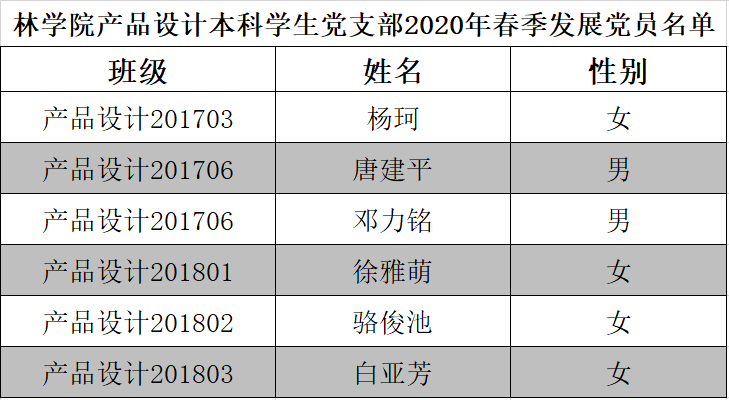 为保证新党员质量,加强对发展党员工作的监督,增强在发展党员工作中的透明度和群众的参与度,根据相关文件精神要求,决定对近期拟由优秀团员发展为中共预备党员的同志实行公示。现将产品设计本科学生党支部补充公示如下: