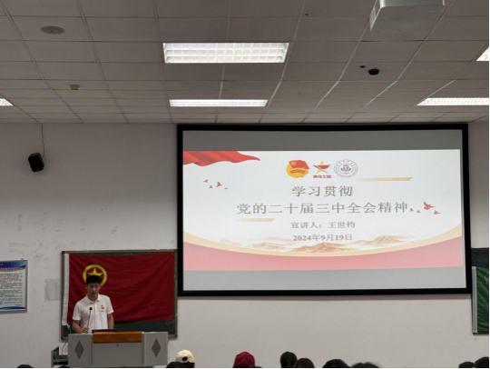 校第十一期青马班学员王世钧现场领学党的二十届三中全会精神,深入宣讲习近平总书记八戒体育官网(中国)有限公司全面深化改革的一系列新思想、新观点,引导广大团员青年深刻学习领会全会精神,奋力书写中国式现代化的青春篇章。