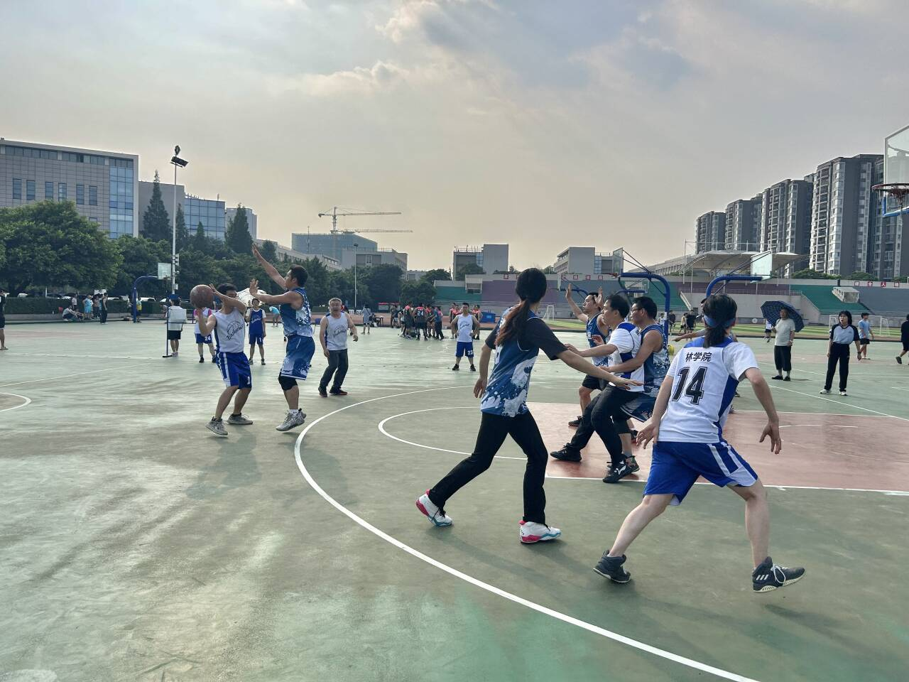 5月27日下午,校工会组织的2024年“3+1+1”教职工篮球比赛决赛在林学院和信教中心国重联队中展开。我院教职工篮球队在院领导胡迅、徐振锋、谭波、杨娟以及众多师生球迷的现场加油助威声中,斗志昂扬、团结拼搏,最终依靠顽强的防守以微弱优势艰难取胜,夺得学院历史上首个教职工篮球比赛冠军!