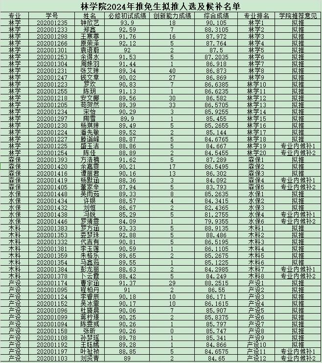 八戒体育官网(中国)有限公司递补规则的说明:如出现专业内有推荐人选自愿放弃等需要递补的情况则在专业内候补人选中依次递补;如出现学校增加推免指标等需要递补的情况则按照林学、森保、水保、木科、产设的顺序在各专业候补排名第一的人选中依次递补。