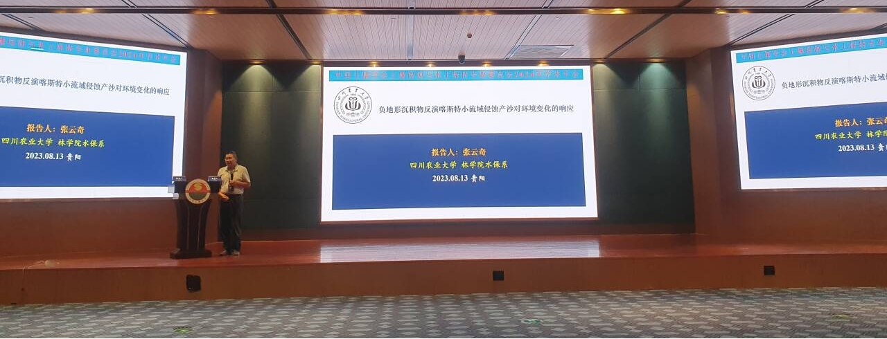 与会期间,我院师生积极参与学术交流,分享研究团队近期学术成果,并与参会专家进行了讨论交流。张云奇教授和王勇教授分别做了题为“负地形沉积物反演喀斯特小流域侵蚀产沙对环境变化的响应”和“人为耕作扰动对陡坡地地形特征及侵蚀过程的影响”的学术报告。在学生专场报告评比中,李伟、史小鹏、陈泳任、胡汪洋、陈波兰、唐岚、郭邦润分别做了题为“华西雨屏区人工林典型沟道土壤碳氮空间特征”、“高山峡谷区农林复合多样化种植诱导下微地形对坡面侵蚀的影响”、“川西高山峡谷区农林复合种植模式对坡面产流产沙特征的影响”、“短轮伐对紫色和黄壤土巨桉人工林的土壤质量影响”、“不同恢复年限对攀枝花钒钛磁铁矿尾矿库植物群落物种多样性和土壤抗冲性的影响”、“华西雨屏区人工林典型沟道土壤入渗空间特征”、“华西雨屏区人工林典型沟道土壤有机碳组分空间特征”的学术报告,其中博士研究生史小鹏荣获优秀研究生报告奖。