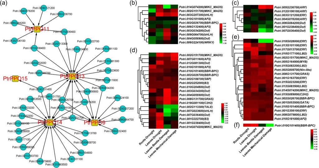 杨树是世界上分布最广、适应性最强的树种。主要分布北半球温带、寒温带森林树种,北纬22°-70°,从低海拔到4800米。在中国分布范围跨北纬25°~53°,东经76°~134°,遍及东北、西北、华北和西南等地。人们广泛地种植树木,如杨树,用于造林和重造林。然而,它们的生长在很大程度上取决于周围环境条件以及它们对非生物和生物胁迫的相对抗性。多酚氧化酶(PPO)是植物中普遍存在的一种金属蛋白酶,在介导植物对生物和非生物胁迫的抗性中起着至关重要的作用。尽管毛果杨的全基因组序列早已发表,但对毛果杨中的PPO基因知之甚少,尤其是那些与干旱胁迫、机械损伤和昆虫取食有关的PPO基因。此外,在整个基因组水平上,八戒体育官网(中国)有限公司激素反应的信息也相当的少。本研究对杨树PPO家族进行了全基因组分析,鉴定出18个PtrPPO基因。然后利用生物信息学和qRT-PCR技术分析PtrPPO的基因结构、系统发育、染色体定位、基因复制、顺式元件和表达模式。序列分析显示三分之二的蛋白原缺乏内含子序列。系统发育分析表明,所有PPO基因可分为11个类群,木本植物中含有多个PPO基因。在杨树的19条染色体上发现了18个PtrPPO基因,其中3对片段复制基因和4个串联重复序列。顺式作用元件分析在不同PPO成员的启动子中鉴定了许多生长发育元件、次级代谢过程和应激相关元件。此外,PtrPPO基因在幼嫩植物的组织和果实中优先表达。此外,聚乙二醇、脱落酸和茉莉酸甲酯可显著诱导一些PtrPPO基因的表达,从而揭示它们在调节应激反应中的潜在作用。目前,我们利用生物信息学确定了PtrPPO基因潜在的上游转录因子。该研究分析有助于选择候选基因进行后续生物学功能研究,了解林木抗逆性的分子遗传基础,也将有助于林木基因资源的开发。