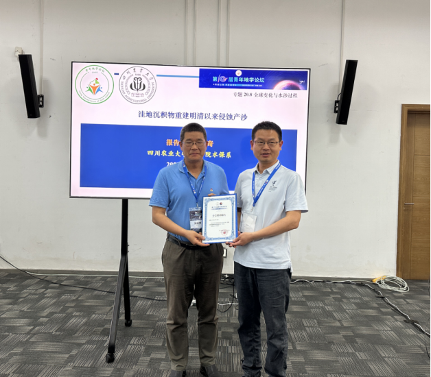 我院水保系师生积极参与学术交流,分享近期研究成果。在“全球变化与水沙过程”专题,张云奇教授受邀作了《洼地沉积物重建明清以来侵蚀产沙》特邀报告。在“土壤侵蚀与水土保持”专题,王勇教授作了《川西高山峡谷区耕作扰动作用下土壤侵蚀变化特征及MUSLE模型优化》的报告,博士研究生李伟作了《喀斯特与非喀斯特流域水库泥沙有机碳氮沉积对环境变化的响应》的报告并获优秀研究生报告奖。