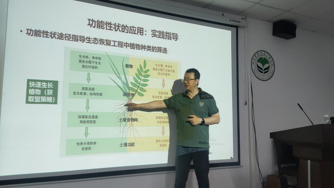 6月26日上午,应学院邀请,兰州大学草地农业科技学院刘满强教授在成都校区五教林学院会议室为师生做了题为“功能性状途径:解析植物调控土壤线虫的新框架”的学术报告。报告由林学院副院长徐振锋主持。刘满强教授详细介绍了植物影响土壤生物的意义,从植物和土壤生物功能性状的协同发展的角度,提出基于功能性状的途径解析植物介导土壤线虫的框架。通过植被演替中土壤线虫的功能性状演变、退耕地根系功能性状与土壤线虫功能性状的关系以及绿肥植物生态策略与线虫功能性状介导三种案例系统阐释了植物调控土壤线虫的新框架。报告结束后,学院师生与刘满强教授积极互动交流,就研究土壤动物功能性状过程中遇到的主要问题进行了讨论。